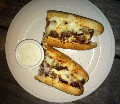 ![]() The Leander Beer Market serves up several heros and this is the Phillysteak Hero with cheese, onions, marinara sauce and Alfredo sauce on the side. |